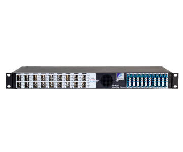 If the unit is populated with CWDM SFPs, all 18 signals can be multiplexed/de-multiplexed over/from one SM fiber. Next to the SFP cages are the optical multiplexer/de-multiplexer I/O’s, configured with LC ports for easy patching with generic, inexpensive LC patch cables.