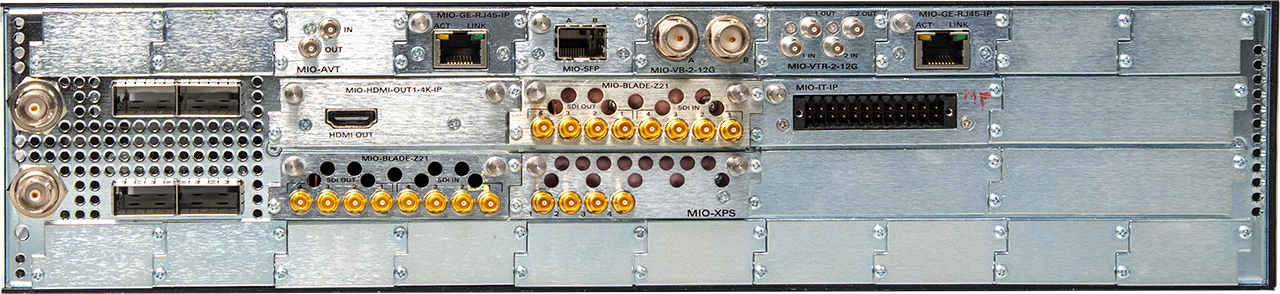 SCORPION has a diverse signal support catalogue. Leveraging miniature input and output (MIO) modules for a wide range of video, audio, and data formats, SCORPION is the platform for aggregating and distributing multiple signal formats simultaneously. This is accomplished with a high degree of customization to meet individual requirements and highly reconfigurable to accommodate changes in workflow.