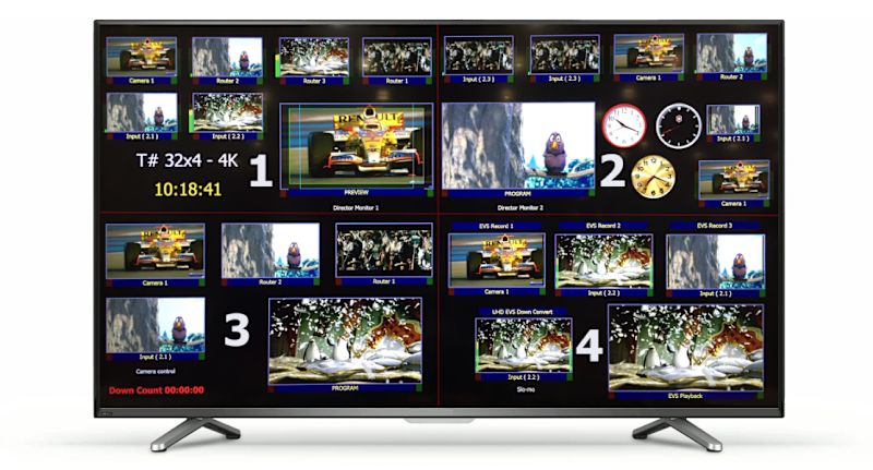 T# provides low latency multi-image display processing – only a single frame processing delay as well as pristine picture quality for true and accurate visual monitoring of signals. T# has a fully interactive and immersive on-screen display set-up via software which includes: