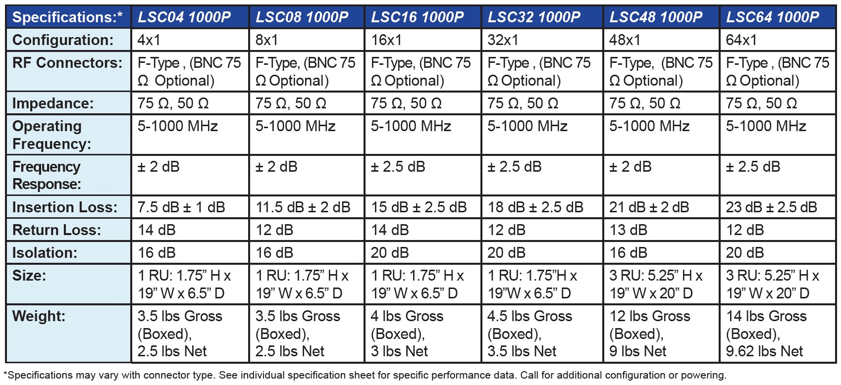 RF Splitters and Combiners: LSC 1000P Passive Broadband Splitters/ Combiner