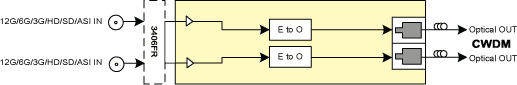 Dual-channel SFP optical transmitter with CWDM lasers. Reclocked with support for 12G, 3G, HD, SD and ASI.