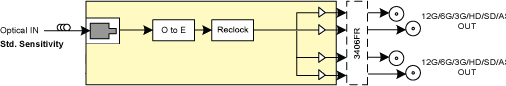 Single-channel SFP optical receiver. Reclocked with support for 12G, 3G, HD, SD and ASI. Single optical input with 4x electrical outputs.