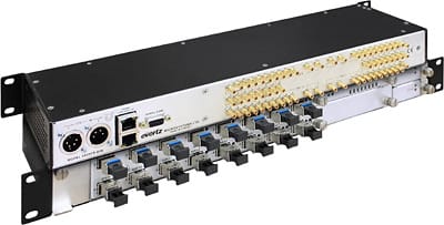 Numerous parameters such as optical power and electrical signal presence and rate can be accessed remotely to monitor system integrity. The 3405FR-DIN was designed to provide carrier-grade reliability with all SFP's, power supplies, frame controllers and the fan module being hot-swappable. There are no active components in the frame itself, a patent-pending feature from Evertz ensuring that the frame and coaxial cabling never need to be removed from the rack for service.